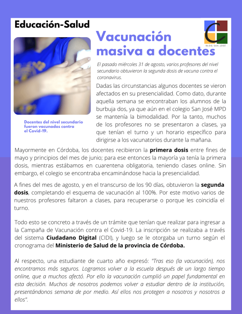 06/10/2021 Por Sofi Martínez Comentarios Información de la entrada Información del autor Deja una respuesta Cancelar la respuestaTu dirección de correo electrónico no será publicada.ComentarioNombre * Correo electrónico * Web Comunidad 06/10/2021 Docentes, Eventos, Novedades covid, profesores, Vacunas Entrada anterior Entrada siguiente Comunidad Administrador Entradas por Comunidad Comenzó el mes de la Palabra 02/06/2022 24/05/2022 06/10/2021 06/10/2021 06/10/2021 Comentarios por Comunidad Entrada anterior « Entrada siguiente » Calendario abril 2026 L M X J V S D 12345 6789101112 13141516171819 20212223242526 27282930 « Nov